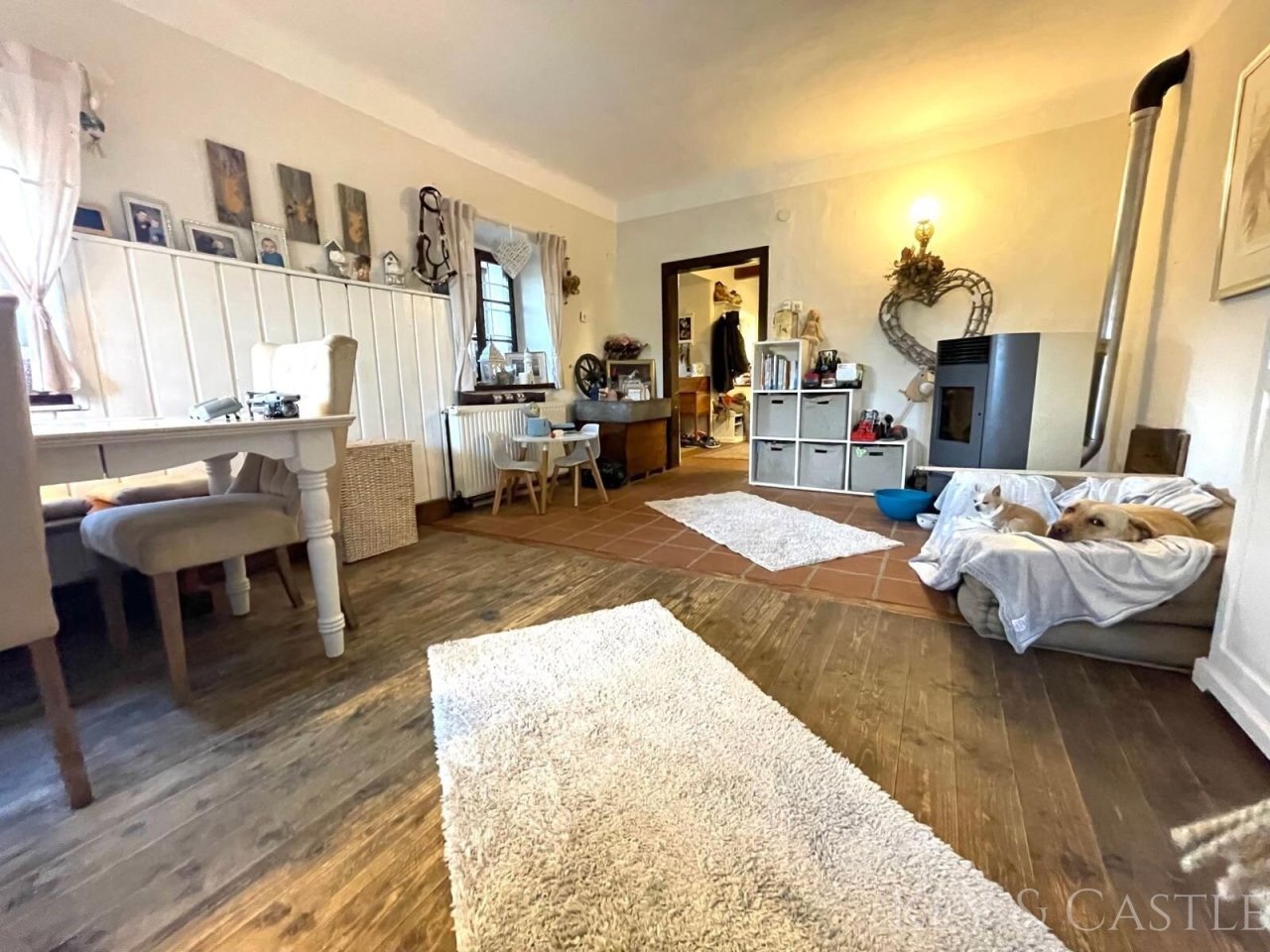 Das wunderschöne Landhaus verfügt über 4 Schlafzimmer, 2 Badezimmer und 3 Toiletten, wobei eine Toilette auch über eine zusätzliche Dusche verfügt. Der Wohnsalon mit seinem alten Holzofen ist das Herzstück des Hauses. Das gemütliche Esszimmer grenzt direkt an die Küche an und verfügt über eine praktische Pelletheizung. Die Küche im Landhausstil ist mit modernen Geräten ausgestattet und bietet viel Platz zum Kochen für Ihre Lieben. Es gibt insgesamt 4 Kaminanschlüsse im Haus, von denen derzeit 2 in Betrieb sind. Im Esszimmer befindet sich ein Pelletofen und im Wohnzimmer ein antiker Holzofen. Zusätzlich bietet das Haus eine gemütliche Einliegerwohnung, die entweder über einen separaten Hauseingang oder durch das Haupthaus betreten werden kann. Der Innenbereich des Hauses ist mit einem authentischen toskanischen Terrakottaboden ausgelegt, der dem Haus eine besondere Urlaubsatmosphäre verleiht. Die Bäder und Toiletten wurden modernisiert und es gibt einen großzügigen Abstellraum mit Waschküche.